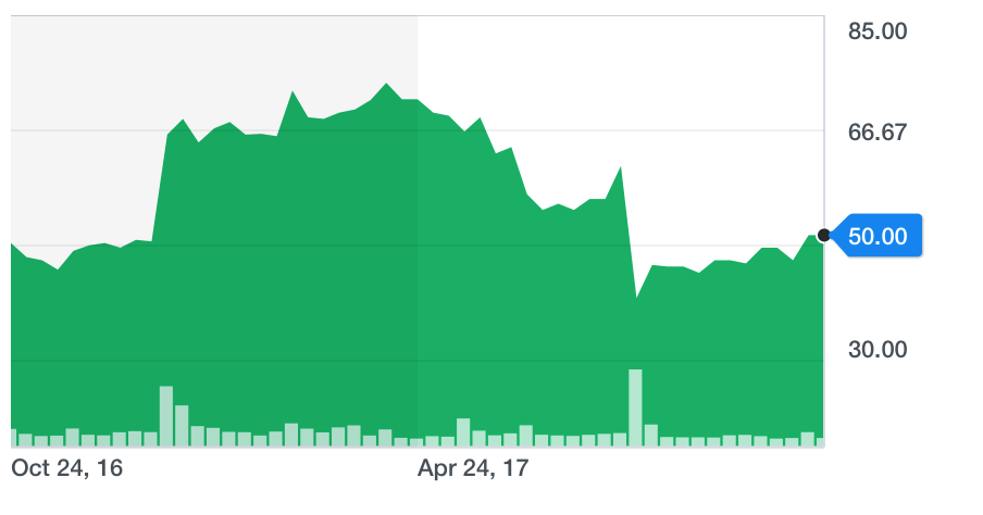 The recent decline in the stock price is related to decline in revenue and profit in the 2017 half year report. A summary of the report can be found here. However, the decline in price as a result of the decline in earnings has provided another opportunity for value investors with an ability to manage higher risk positions to buy assets at about half their value.